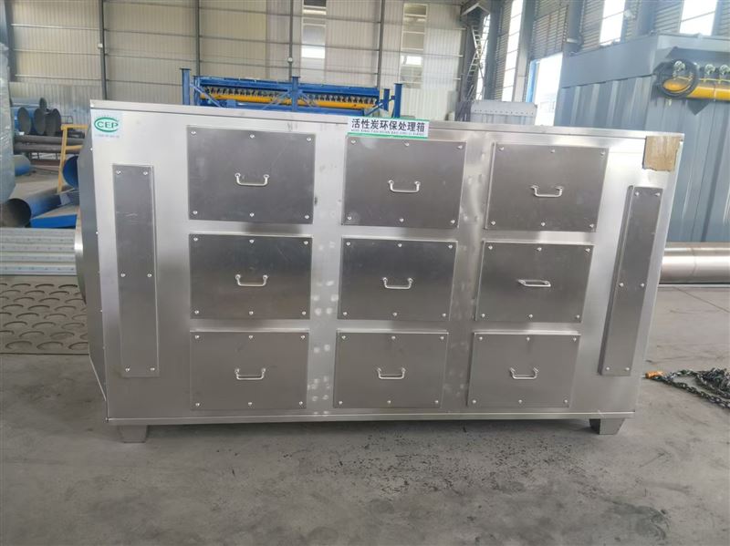 活性炭吸附箱之所以能成为工业废气处理的常用设备,核心在于其利用了活性炭的强大吸附特性。活性炭是一种具有丰富孔隙结构的碳质材料,经过特殊工艺活化后,内部形成大量微孔、中孔和大孔,这些孔隙结构使其拥有极大的比表面积,每克活性炭的比表面积可高达几百甚至上千平方米。当含有有机污染物、异味等有害物质的废气进入活性炭吸附箱后,废气会在风机的作用下沿着预设的气流通道流动,与箱体内填充的活性炭充分接触。此时,废气中的有害物质分子会受到活性炭孔隙表面分子的引力作用,被吸附到活性炭的孔隙内部,从而与干净的气体分离。净化后的气体经过处理后,达到排放标准再从活性炭吸附箱的出风口排出。活性炭吸附箱的高效性还体现在其对多种类型废气的适配性上,无论是苯类、酮类、酯类等有机废气,还是一些恶臭气体,都能被活性炭吸附箱中的活性炭有效捕捉。而且,活性炭吸附箱的结构设计使得废气与活性炭的接触时间充足,接触面积大,进一步提升了吸附效率。在实际应用中,通过合理设计活性炭的填充量、气流速度等参数,活性炭吸附箱能够稳定高效地发挥作用,为企业的废气达标排放提供有力保障。